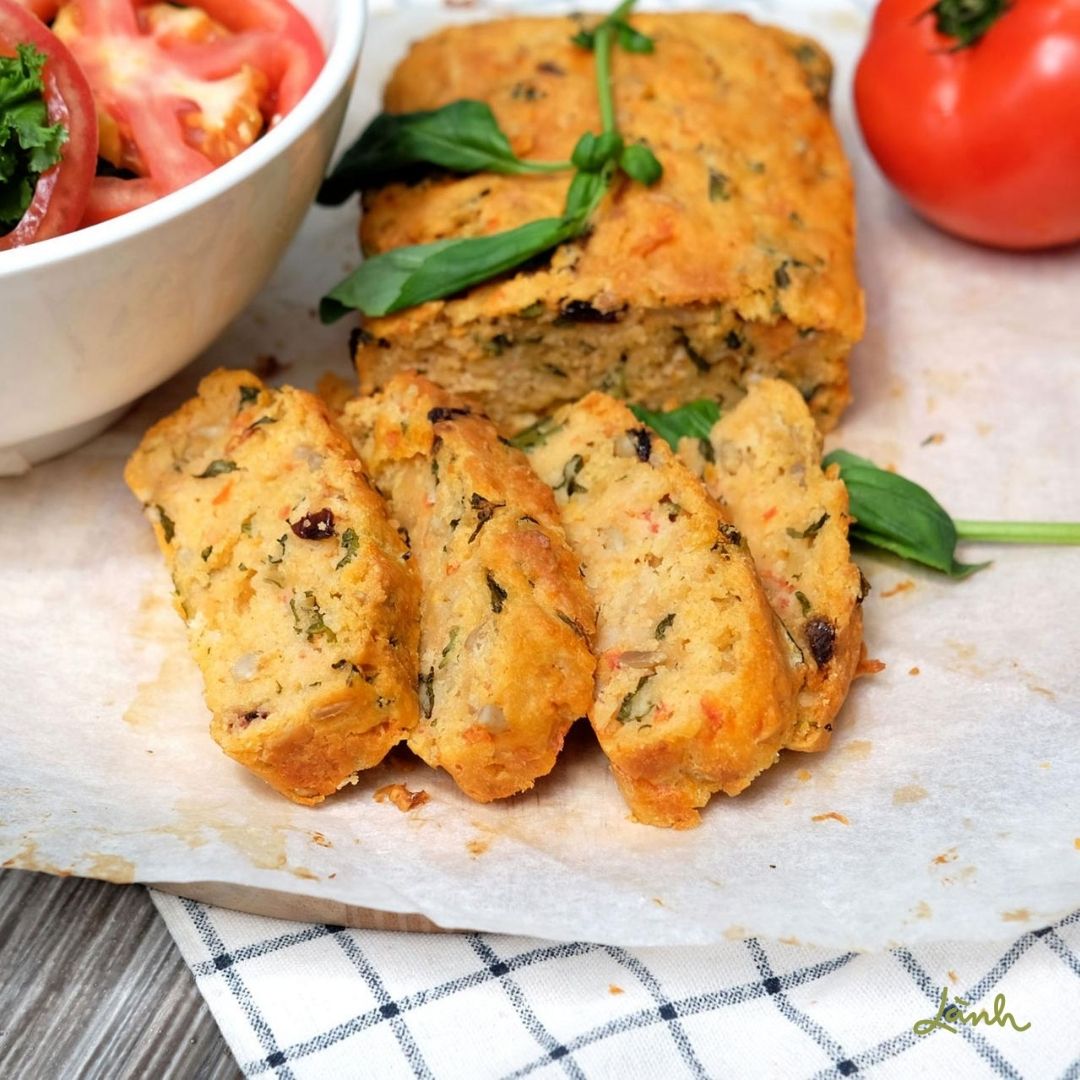 Vegan tomato basil bread có vị mặn mặn phù hợp làm bữa sáng tiện lợi, nhanh chóng; có thể dùng kèm với các món khác để tăng phần thú vị và đa dạng.