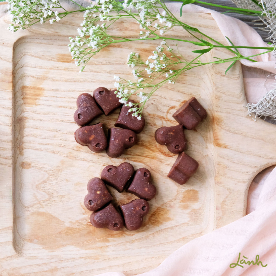Bơ cacao nguyên chất, bơ hạt điều, đường, chiết suất vanilla, muối.