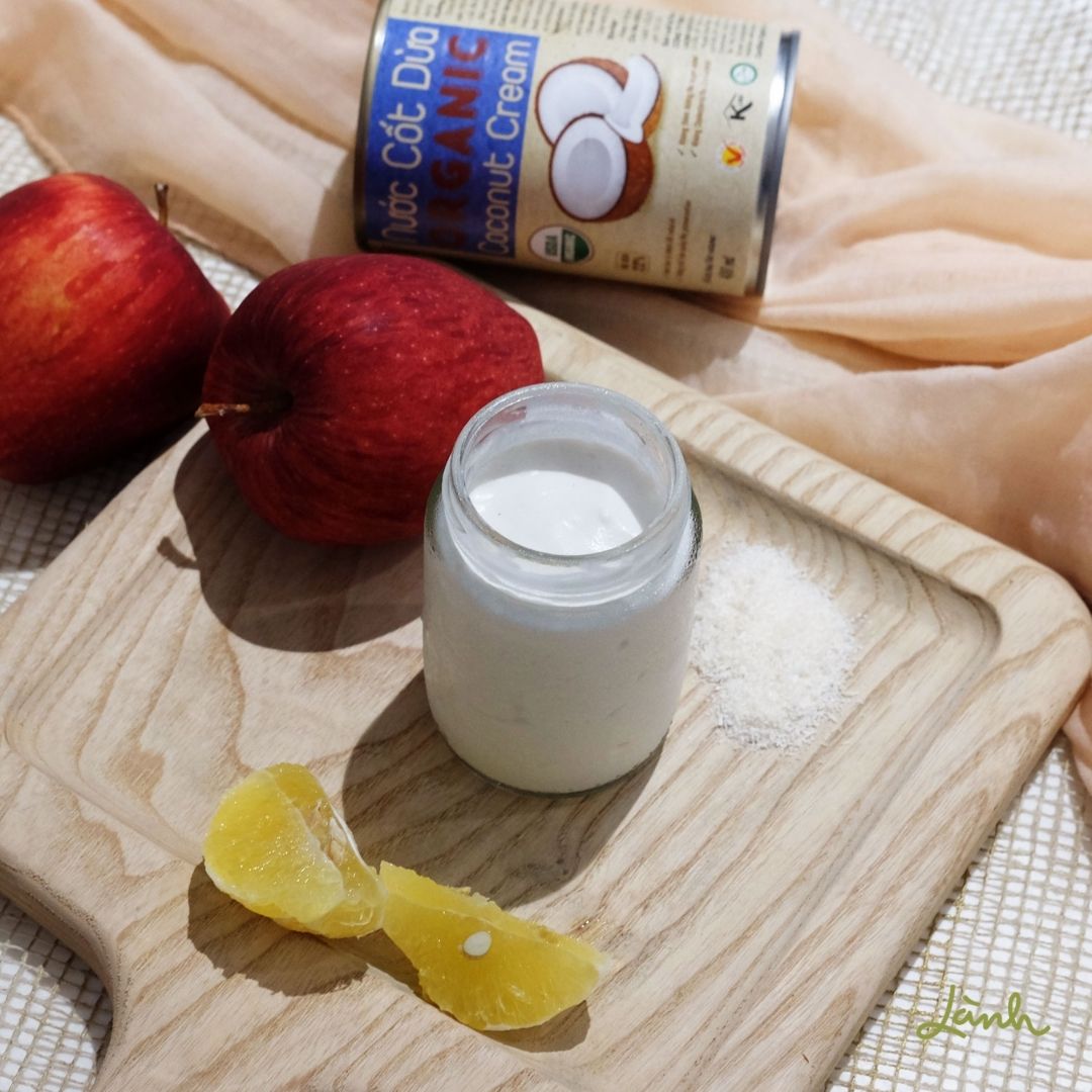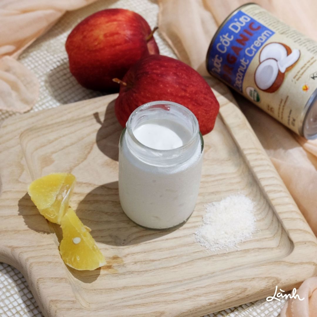 Hạt điều tươi, nước cốt dừa, đường thốt nốt, men vi sinh lợi khuẩn.